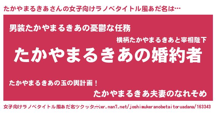 | 肩書あだ名 | 『たかやまるきあ総理大臣』 |