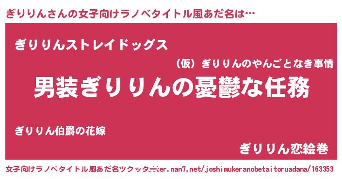 | 男性向けラノベタイトル風あだ名 | 『うちのぎりりんが世界を掌握している!』 |