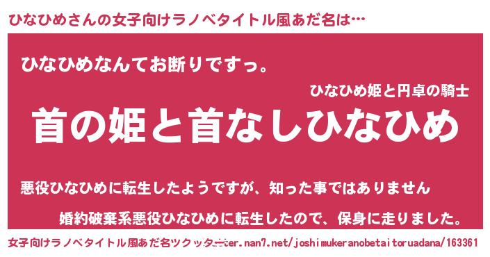| 男性向けラノベタイトル風あだ名 | 『はたらくひなひめさま!』 |
