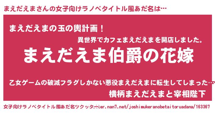 | 男性向けラノベタイトル風あだ名 | 『やはりまえだえまの青春ラブコメはまちがっている 』 |