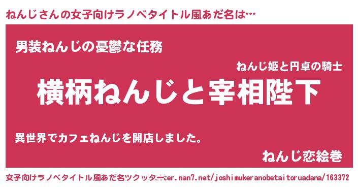 | 男性向けラノベタイトル風あだ名 | 『ねんじに滅ぼされるだけの簡単なお仕事です』 |