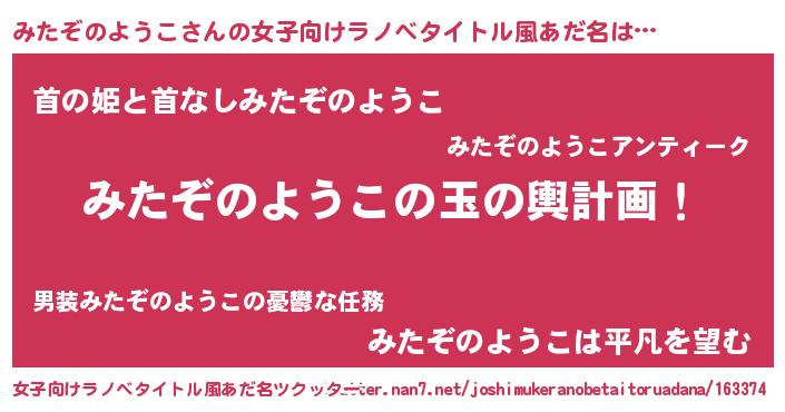 | 胡散臭い通販商品みたいなあだ名 | 『全米が絶賛したペンダント…その名も「みたぞのようこ」』 |