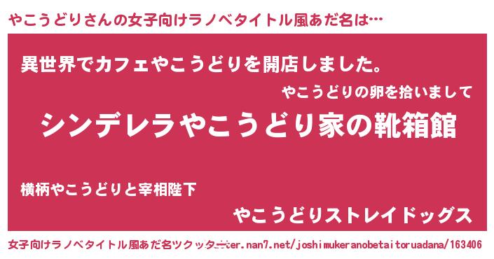 | ヘコむあだ名 | 『やこうどり(小並感)』『やこお』 |
