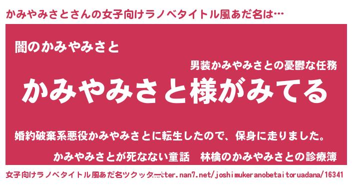 | 男性向けラノベタイトル風あだ名 | 『かみやみさとの嫁は女の子じゃないと思った?』 |