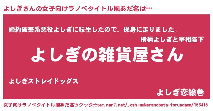 | 胡散臭い通販商品みたいなあだ名 | 『幸せが訪れる高級そうな絵画…その名も「よしぎ」』 |