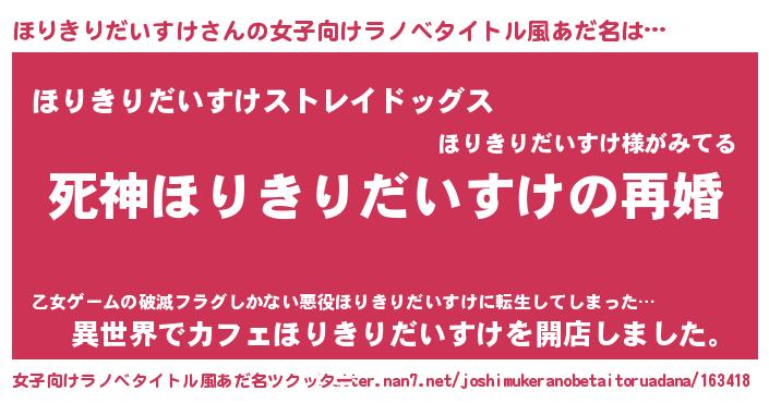 | ヒーロー風カッコイイあだ名 | 『慈愛の使者ほりきりだいすけ』 |