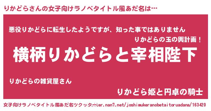| 男性向けラノベタイトル風あだ名 | 『りかどらに滅ぼされるだけの簡単なお仕事です』 |