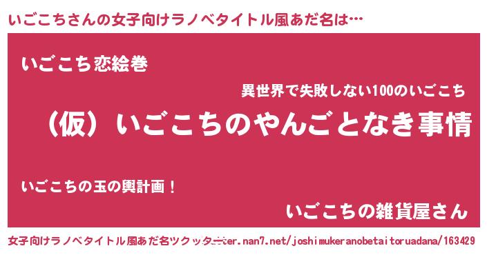 | 男性向けラノベタイトル風あだ名 | 『いごこちの憂鬱』 |