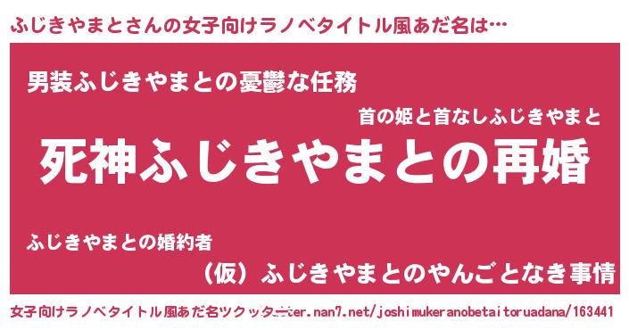 | 男性向けラノベタイトル風あだ名 | 『ノーゲーム・ノーフジキヤマト』 |