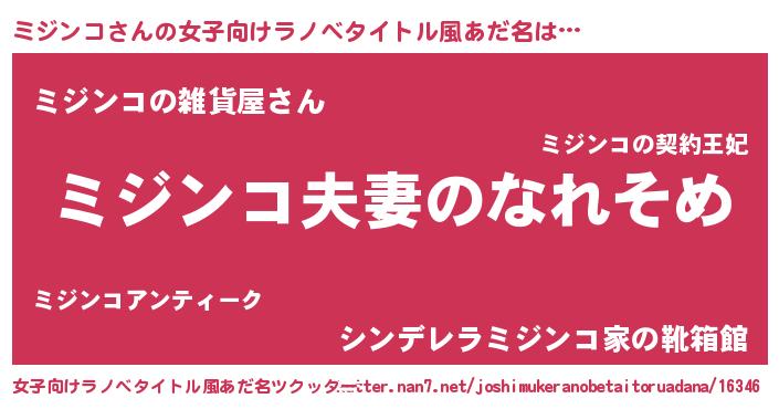 | 男性向けラノベタイトル風あだ名 | 『おまえをオタクにしてやるから、俺をミジンコにしてくれ! 』 |