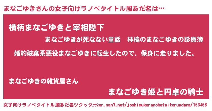| 胡散臭い通販商品みたいなあだ名 | 『必ず成功するブレスレット…その名も「まなごゆき」』 |