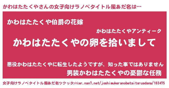 | 胡散臭い通販商品みたいなあだ名 | 『伝統あるサプリメント…その名も「かわはたたくや」』 |