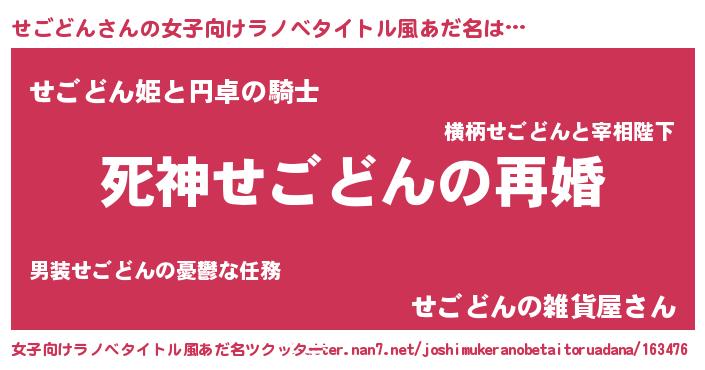 | 男性向けラノベタイトル風あだ名 | 『ノーゲーム・ノーセゴドン』 |