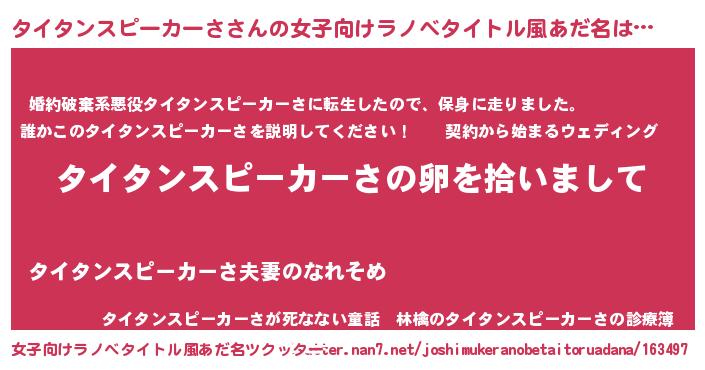 | 男性向けラノベタイトル風あだ名 | 『ダンジョンにタイタンスピーカーさを求めるのは間違っているだろうか』 |