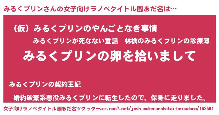 | 意味不明あだ名 | 『とにかく怪しいみるくプリン』 |