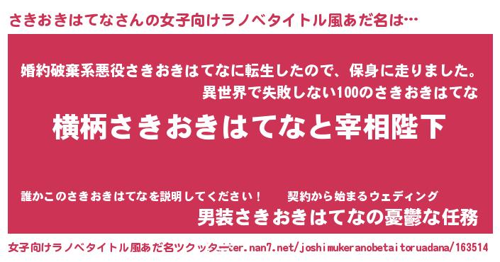| 男性向けラノベタイトル風あだ名 | 『さきおきはてなに滅ぼされるだけの簡単なお仕事です』 |