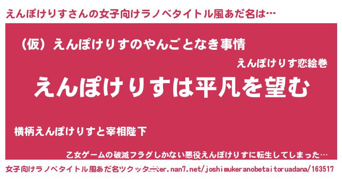 | 胡散臭い通販商品みたいなあだ名 | 『信頼と実績のペンダント…その名も「えんぽけりす」』 |