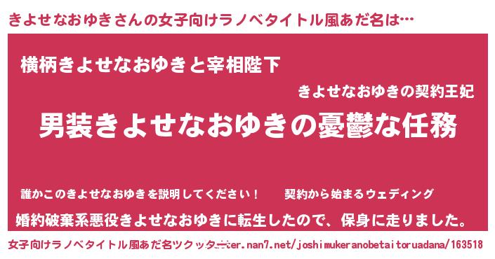| 胡散臭い通販商品みたいなあだ名 | 『来世でも幸せになれる水素水…その名も「きよせなおゆき」』 |