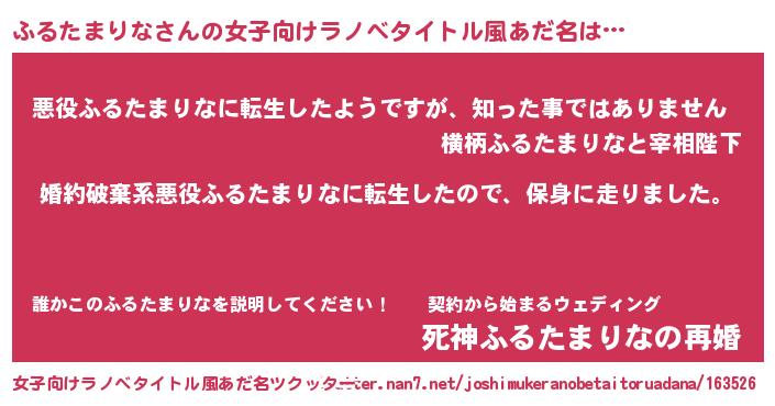 | 胡散臭い通販商品みたいなあだ名 | 『世界中を虜にした100年もののヴィンテージワイン…その名も「ふるたまりな」』 |