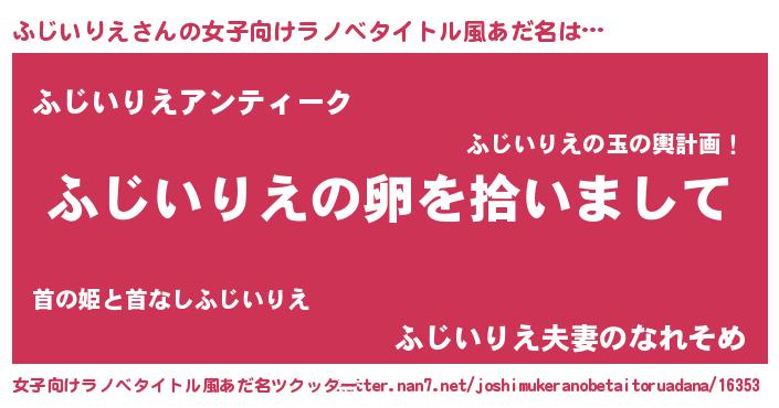 | 男性向けラノベタイトル風あだ名 | 『ふじいりえの嫁は女の子じゃないと思った?』 |
