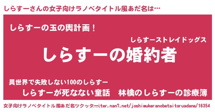 | 胡散臭い通販商品みたいなあだ名 | 『運命の人と巡り会える高級そうな壺…その名も「しらすー」』 |
