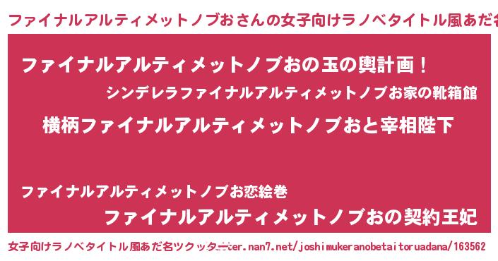 | 男性向けラノベタイトル風あだ名 | 『ファイナルアルティメットノブおに滅ぼされるだけの簡単なお仕事です』 |