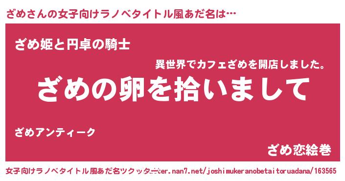 | 男性向けラノベタイトル風あだ名 | 『ダンジョンにざめを求めるのは間違っているだろうか』 |