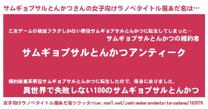 | 胡散臭い通販商品みたいなあだ名 | 『テレビで話題のアガリクス…その名も「サムギョプサルとんかつ」』 |