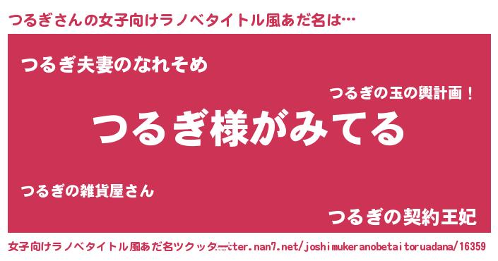| 男性向けラノベタイトル風あだ名 | 『つるぎの嫁は女の子じゃないと思った?』 |
