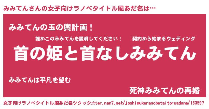 | 男性向けラノベタイトル風あだ名 | 『はたらくみみてんさま!』 |