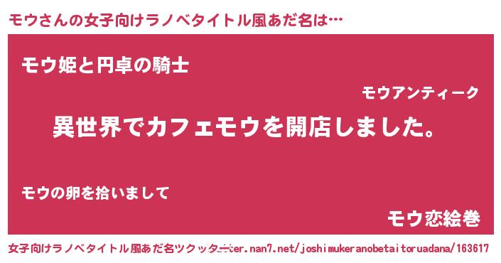 | 男性向けラノベタイトル風あだ名 | 『誰もが恐れるあのモウが、ぼくの専属メイドになるようです。』 |