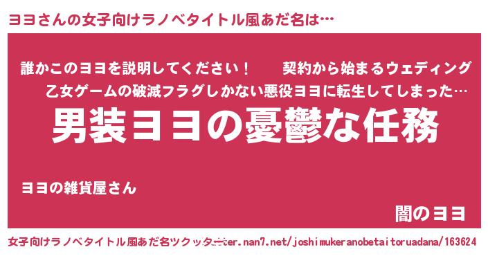 | 男性向けラノベタイトル風あだ名 | 『冴えないヨヨの育てかた』 |