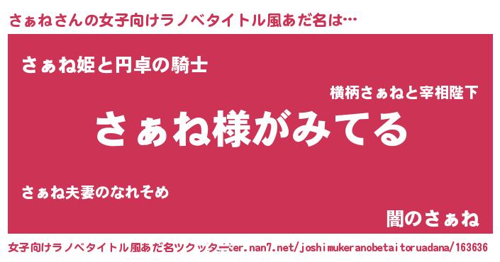 | 意味不明あだ名 | 『とにかく怪しいさぁね』『自称さぁね』 |
