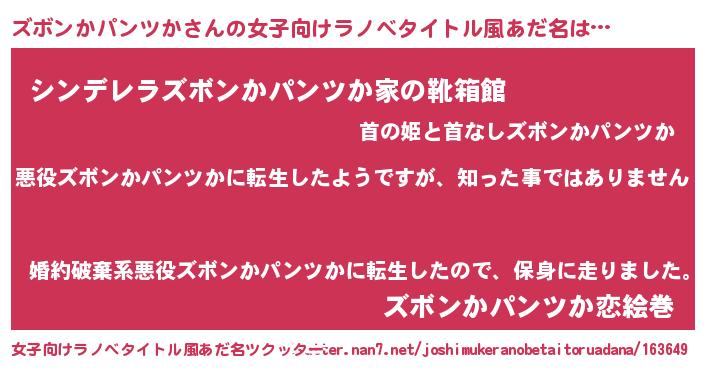 | 胡散臭い通販商品みたいなあだ名 | 『あなたにだけ特別に提供する世界で10本だけ現存している希少なブランデー…その名も「ズボンかパンツか」』 |
