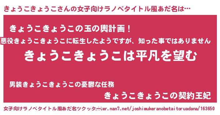 | 胡散臭い通販商品みたいなあだ名 | 『信頼と実績のサプリメント…その名も「きょうこきょうこ」』 |
