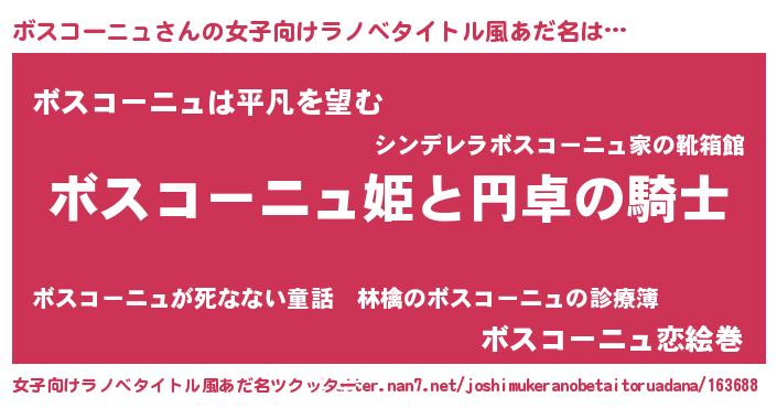 | 男性向けラノベタイトル風あだ名 | 『ボスコーニュの憂鬱』 |