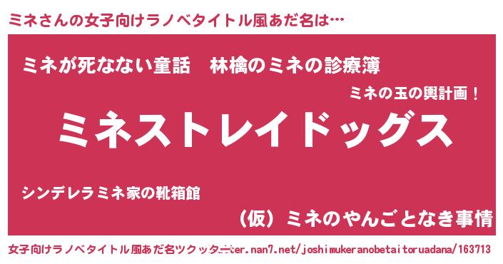 | 意味不明あだ名 | 『自称ミネ』『住所不定無職ミネ(8歳)』 |