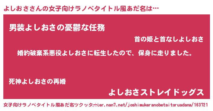 | 胡散臭い通販商品みたいなあだ名 | 『ガンによく効く高麗人参…その名も「よしおさ」』 |
