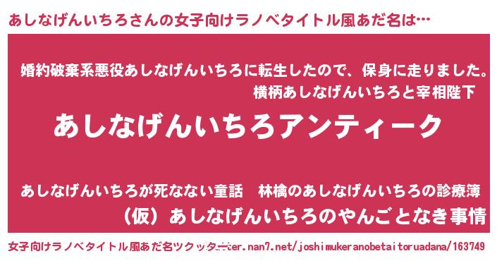 | 意味不明あだ名 | 『自称あしなげんいちろ』 |