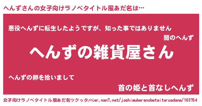 | 男性向けラノベタイトル風あだ名 | 『やはりへんずの青春ラブコメはまちがっている 』 |