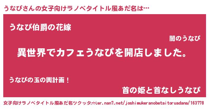 | ファンタジー風あだ名 | 『ウナディッシュ』『エターナルウナピー』 |