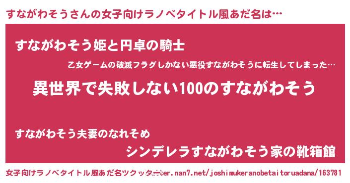| 男性向けラノベタイトル風あだ名 | 『すながわそうという概念が存在しない退屈な世界 』 |