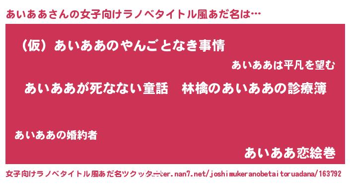 | 男性向けラノベタイトル風あだ名 | 『魔弾の王とあいああ』『あいああの憂鬱』 |