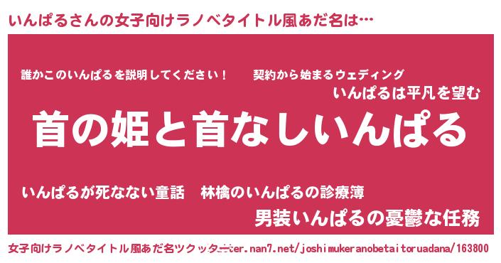 | 男性向けラノベタイトル風あだ名 | 『はたらくいんぱるさま!』 |