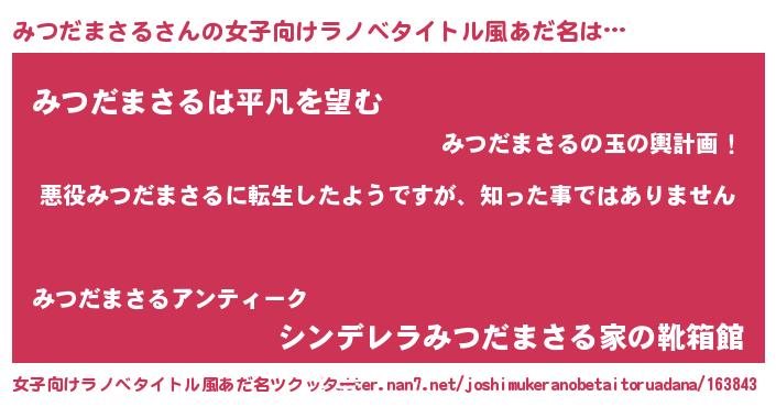 | 男性向けラノベタイトル風あだ名 | 『この素晴らしい世界にみつだまさるを!』 |