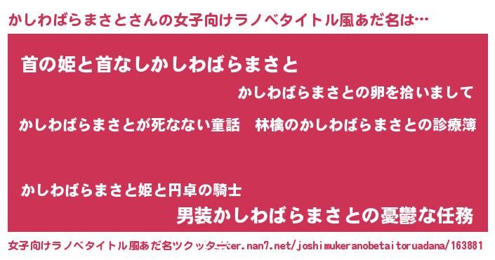 | 料理風あだ名 | 『かしわばらまさとのカルパッチョ風』 |