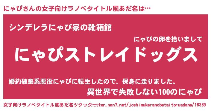 | 男性向けラノベタイトル風あだ名 | 『Re:にゃぴから始める異世界生活』 |