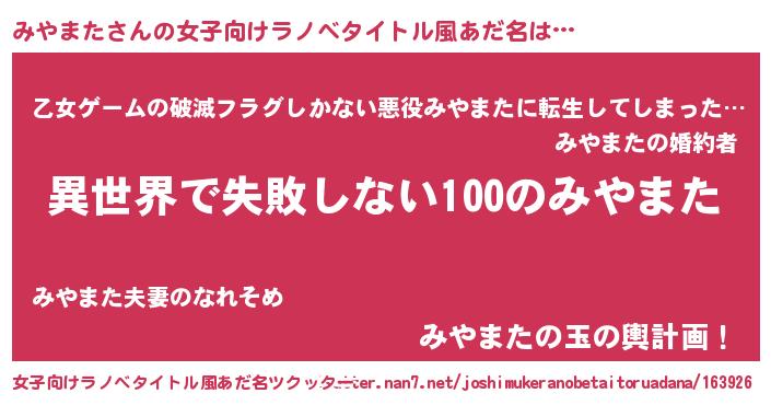 | 男性向けラノベタイトル風あだ名 | 『みやまたという概念が存在しない退屈な世界 』 |