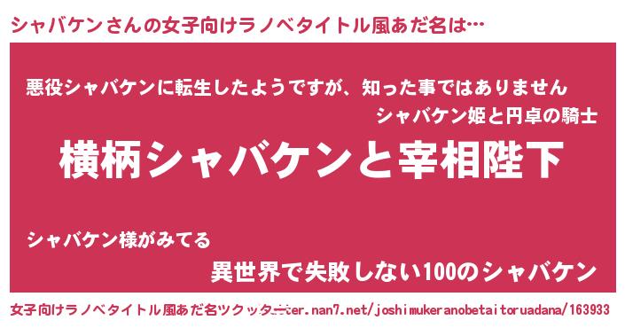 | 胡散臭い通販商品みたいなあだ名 | 『あなたにだけ特別に提供する世界で10本だけ現存している希少なブランデー…その名も「シャバケン」』 |