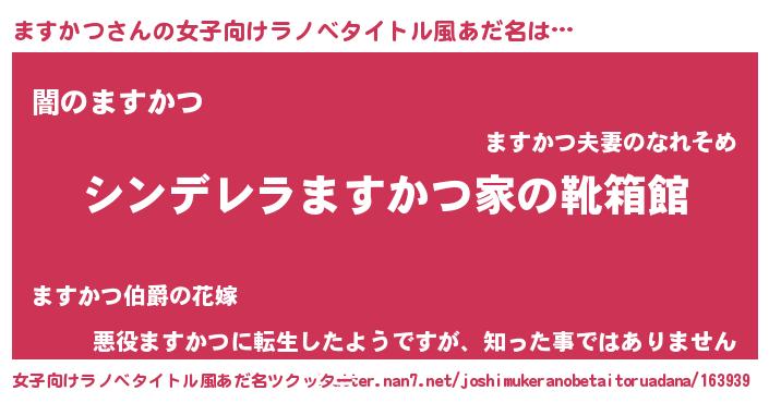 | 男性向けラノベタイトル風あだ名 | 『冴えないますかつの育てかた』 |